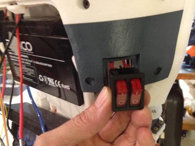 You have the option to add 2 switches on each side of the robot for various purposes. I use one as main shut down., another one is to power up the mini Amplifier. The third is to power up the wheel mobile base and the fourth is currently vacant. These switches are available in most spare electrical stores and on internet of course.