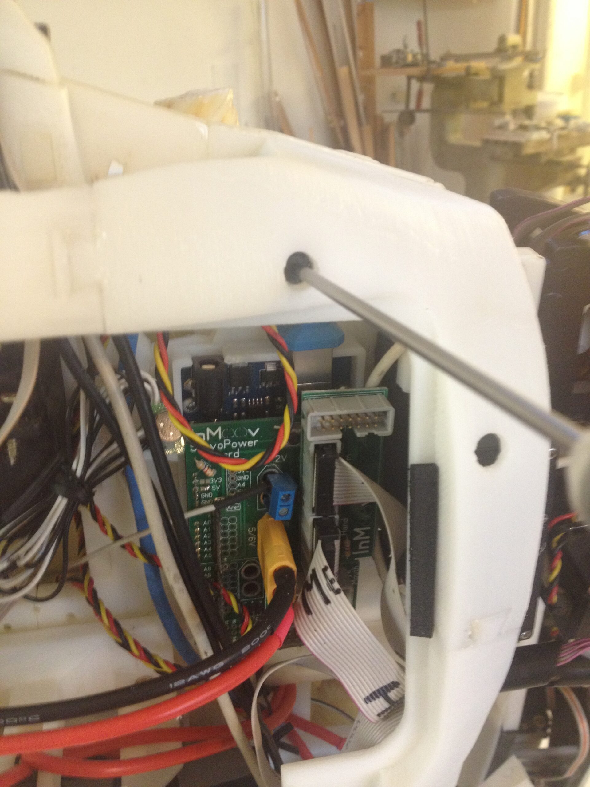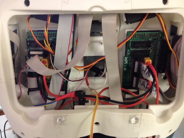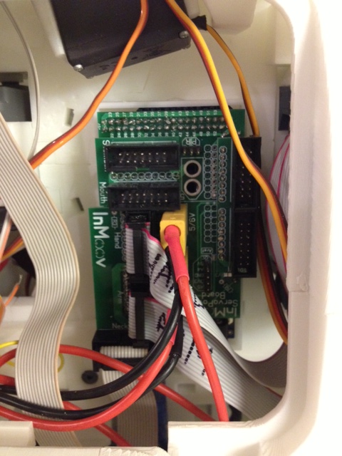 If you plan to use extra servos for the neck (Bob Houston upgrade) You will need to rotate upside down your Arduino and Nervo boards, mainly because the USB cable is not well positionned.