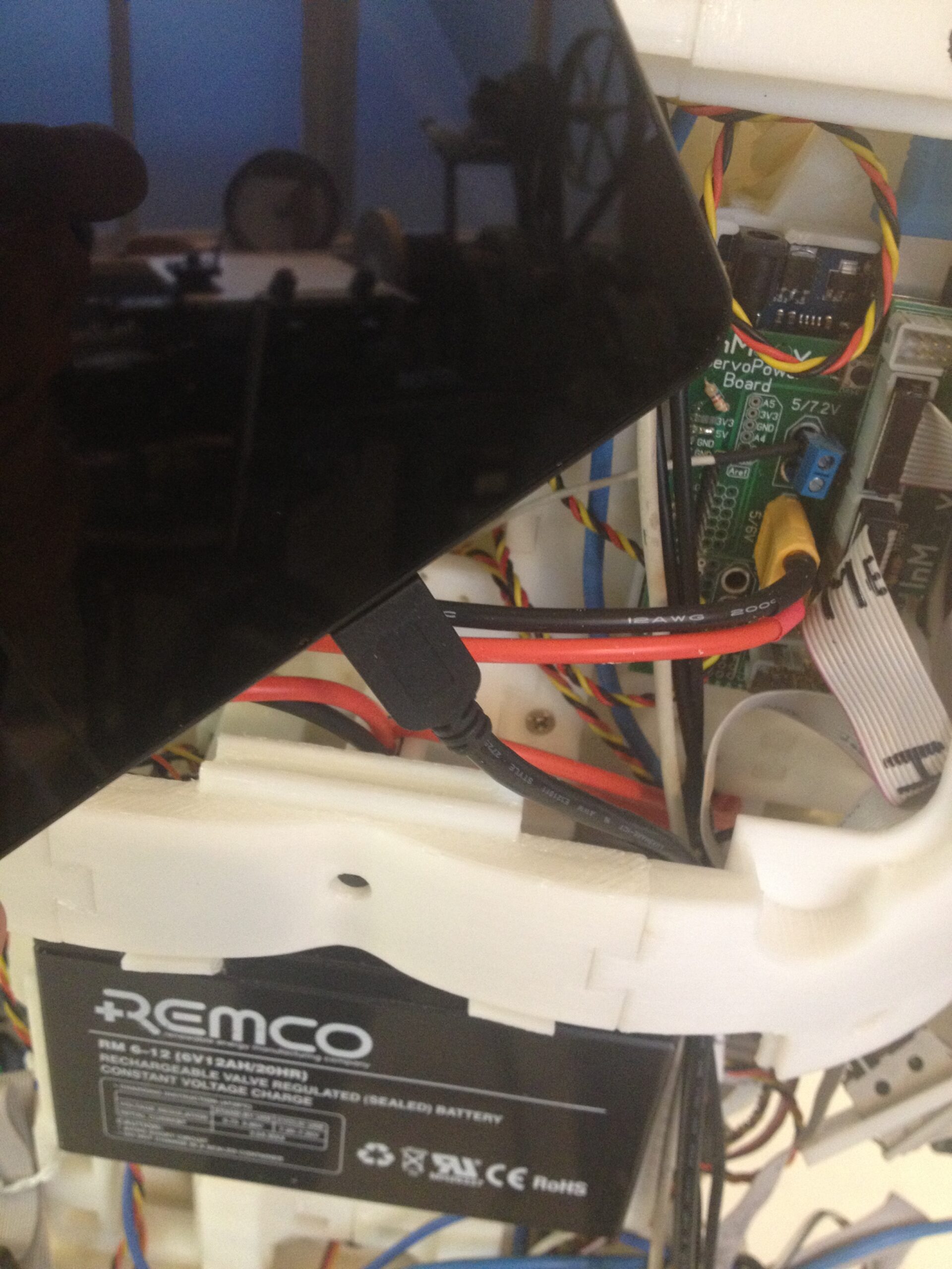 IMG_1997Connect the mini USB OTG cable to your Thinkpad Lenovo 8″ Tablet (see BOM for part list) and place and press fit on the back of your InMoov.