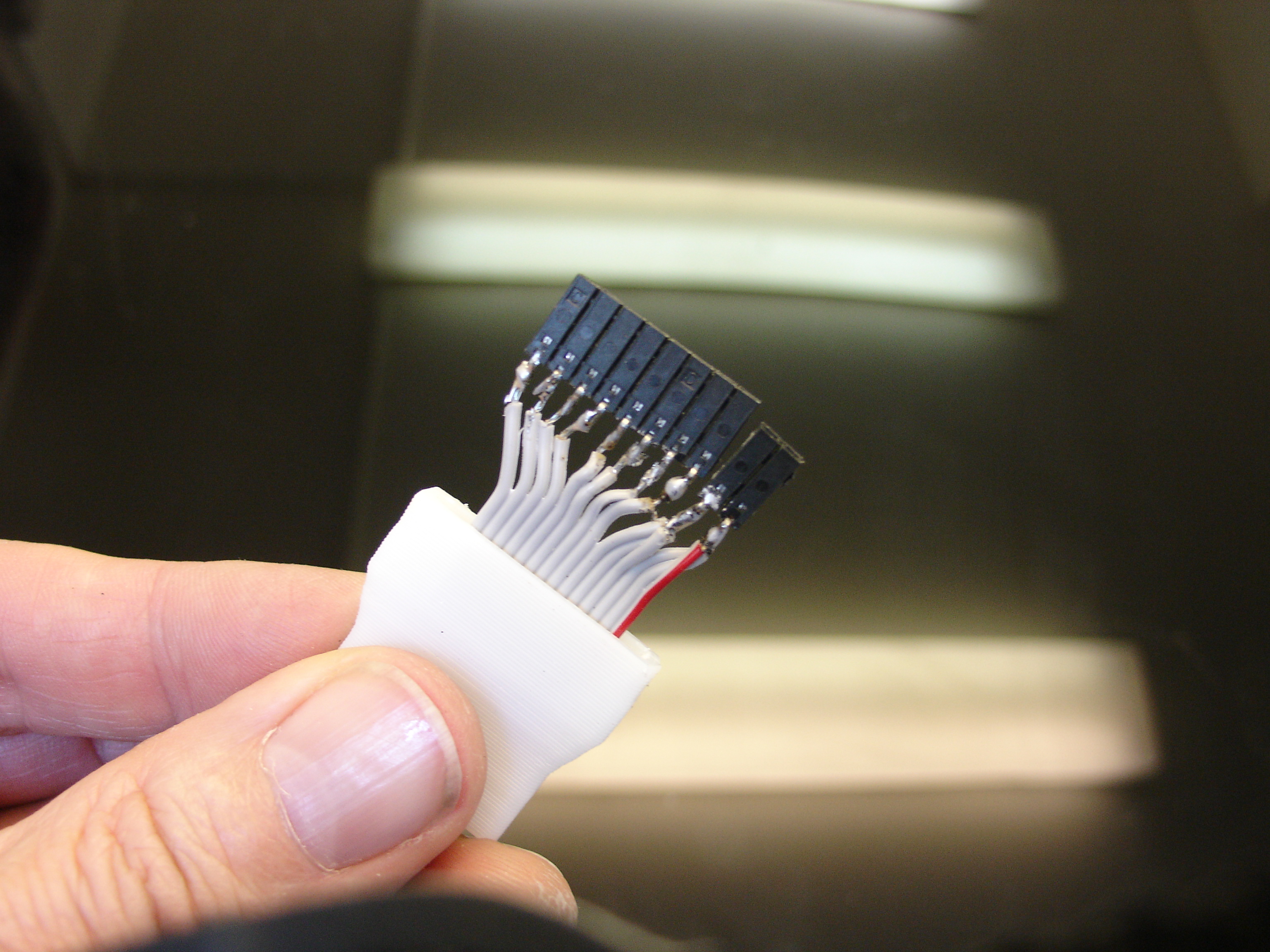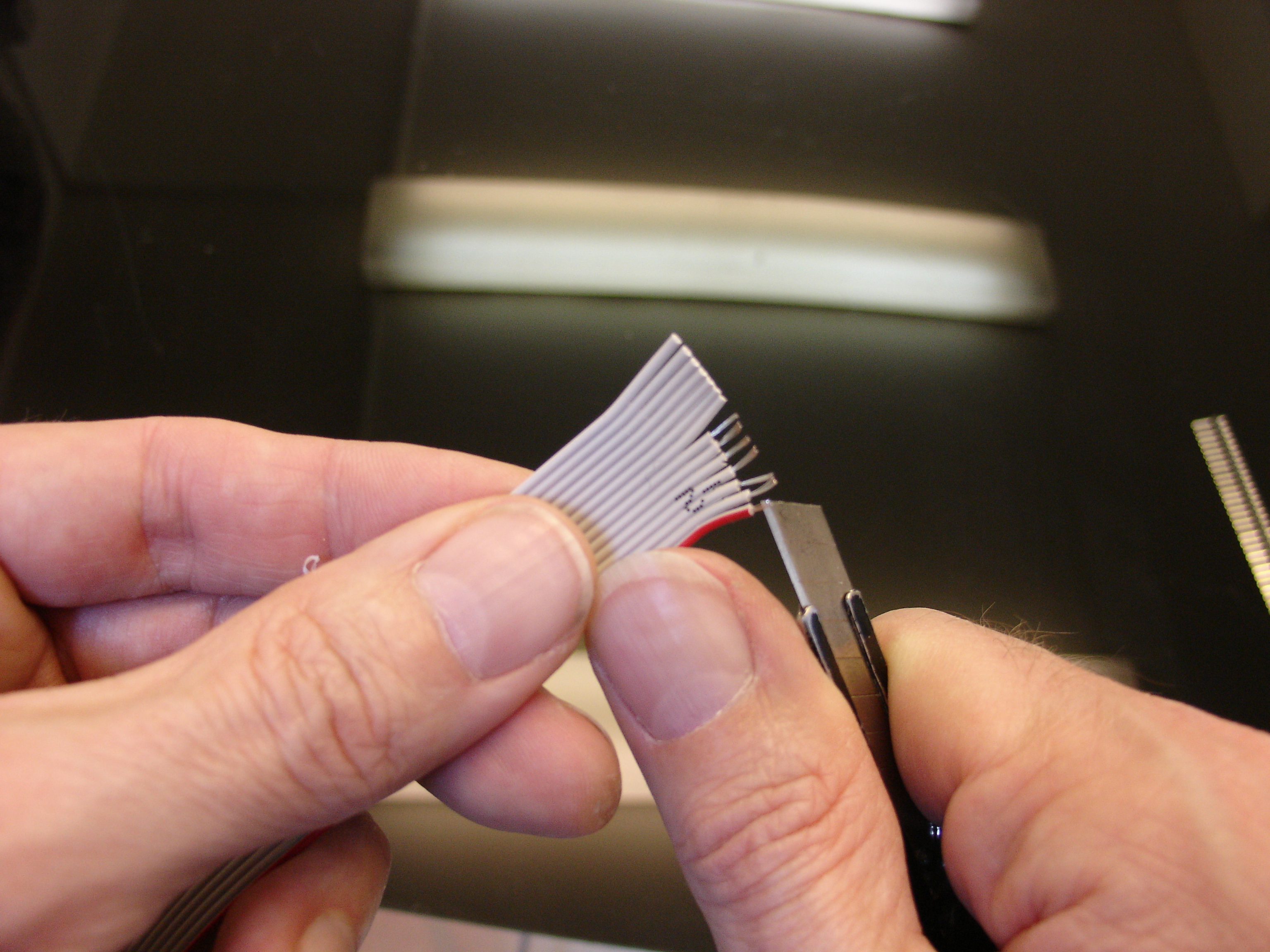 The red side of the ribbon will be our power supply reference. We want to have 3 wires for the VCC+, and 3 wires for GND. the rest will be for the PWM.