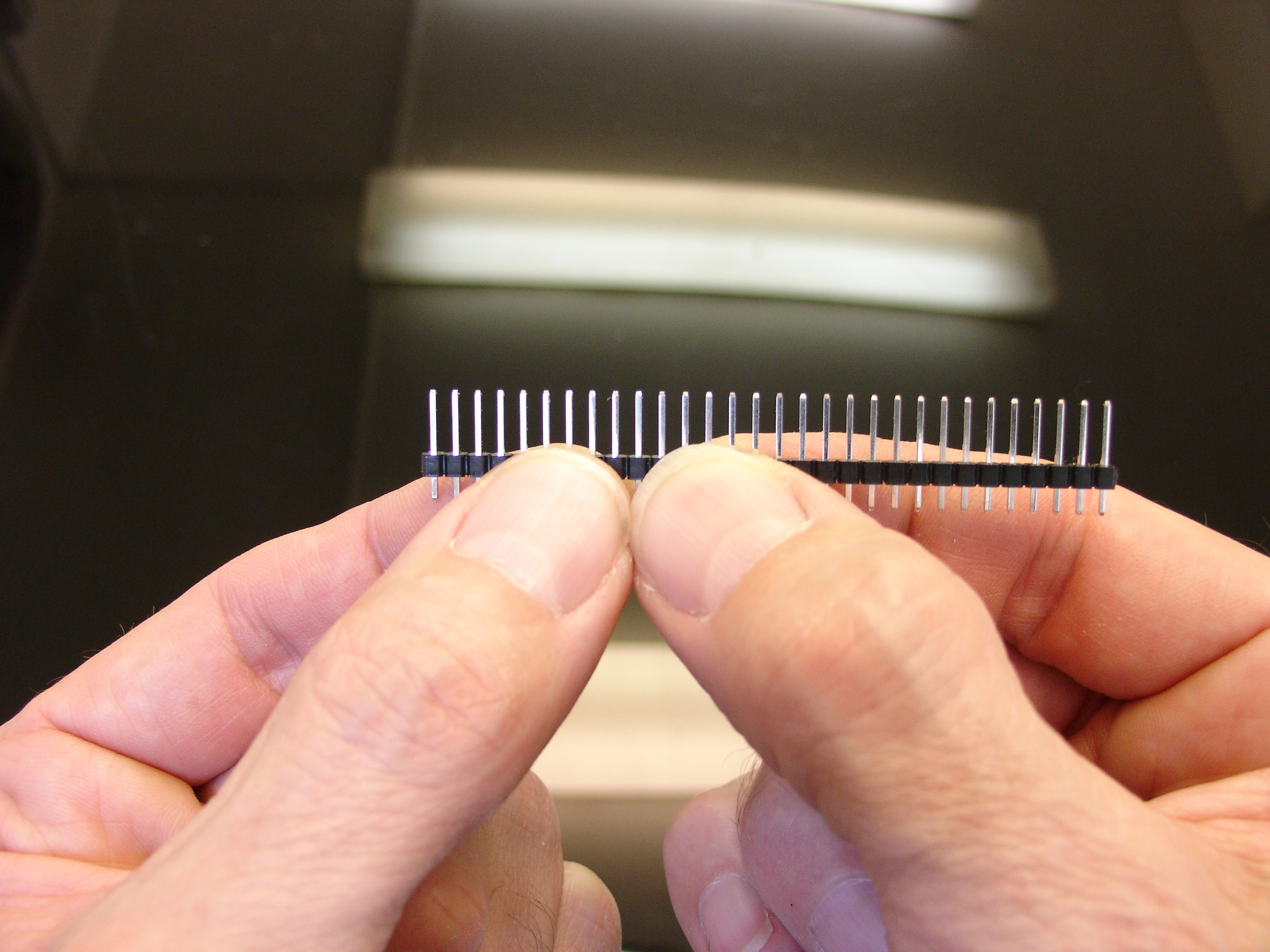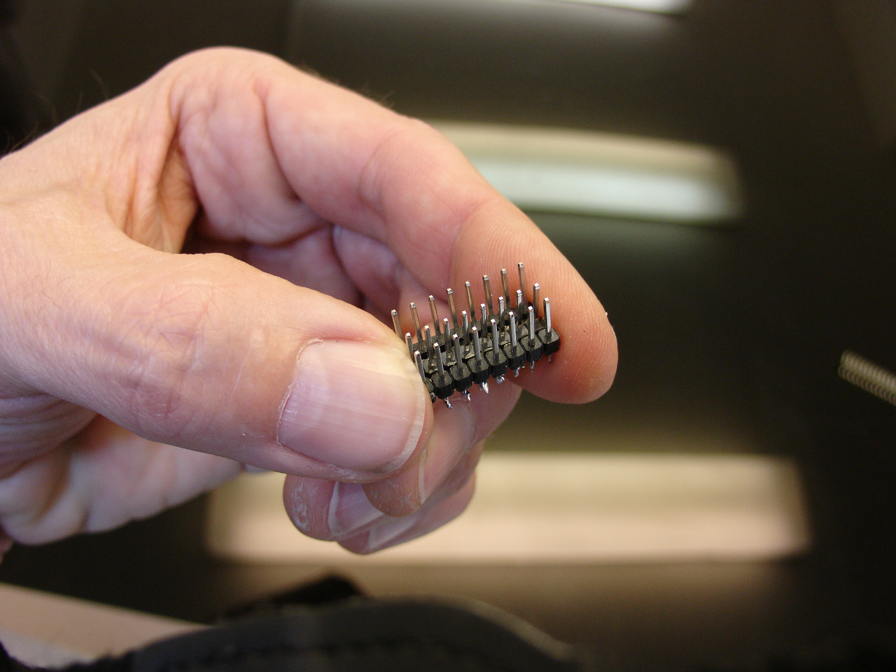 Welding the wires to the pins, specially on the male header pins is a bit difficult because the space between the pins is pretty small and narrow.