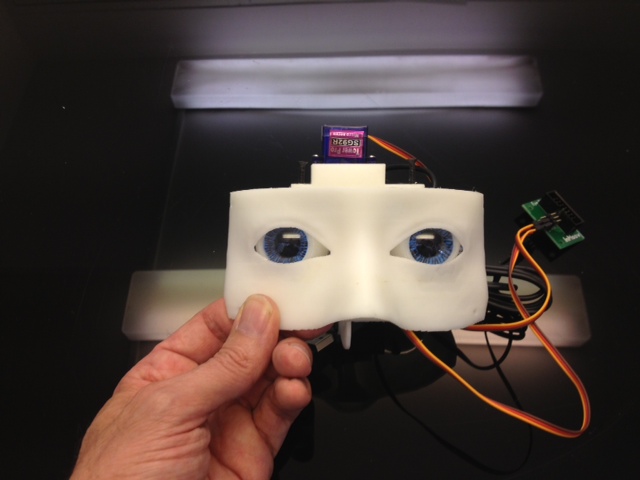 Now fix EyeMoverSide through EyeCamera to the actuator of the servo. You can also mount a second servo instead of using EyeMoverSide.