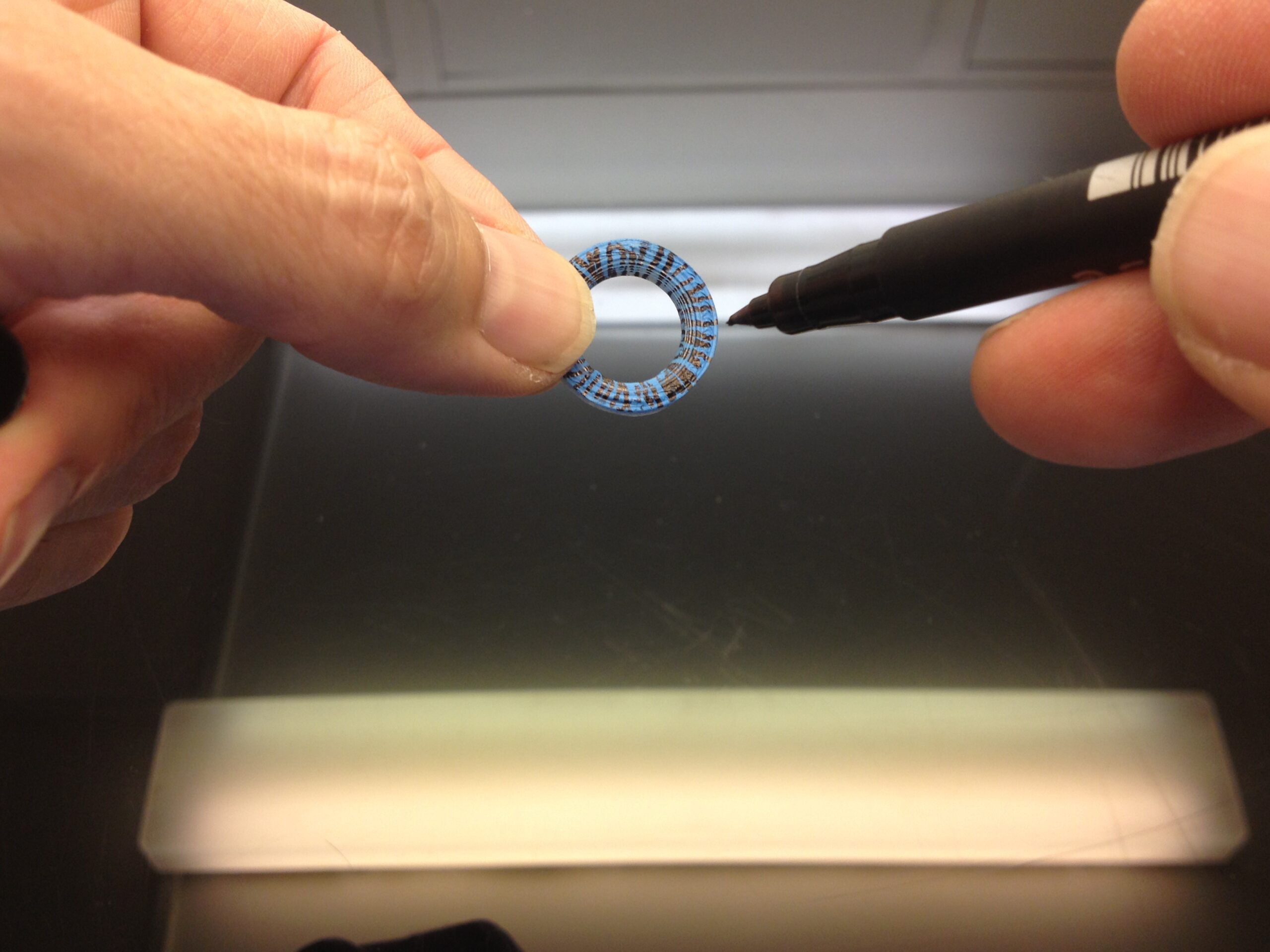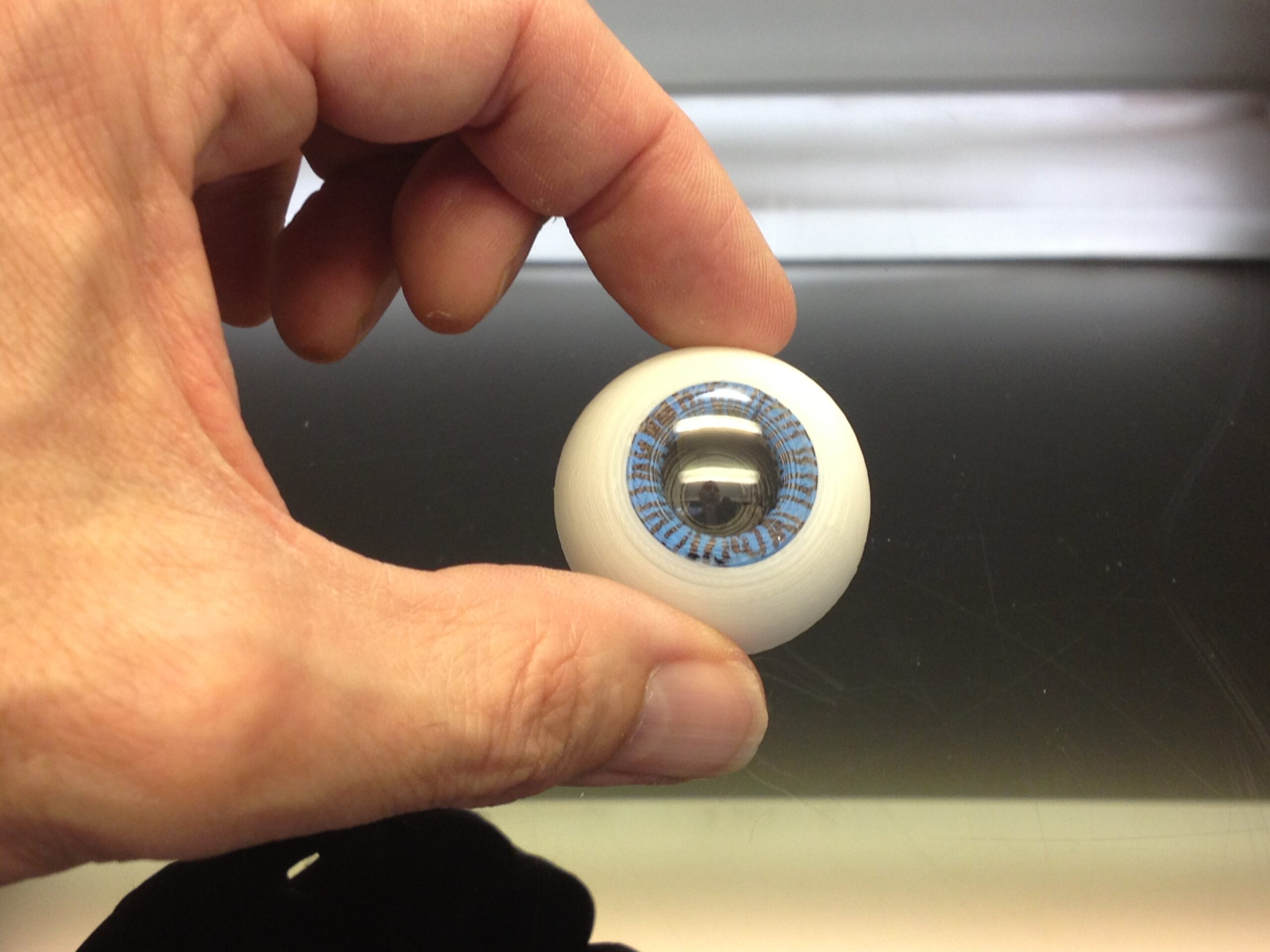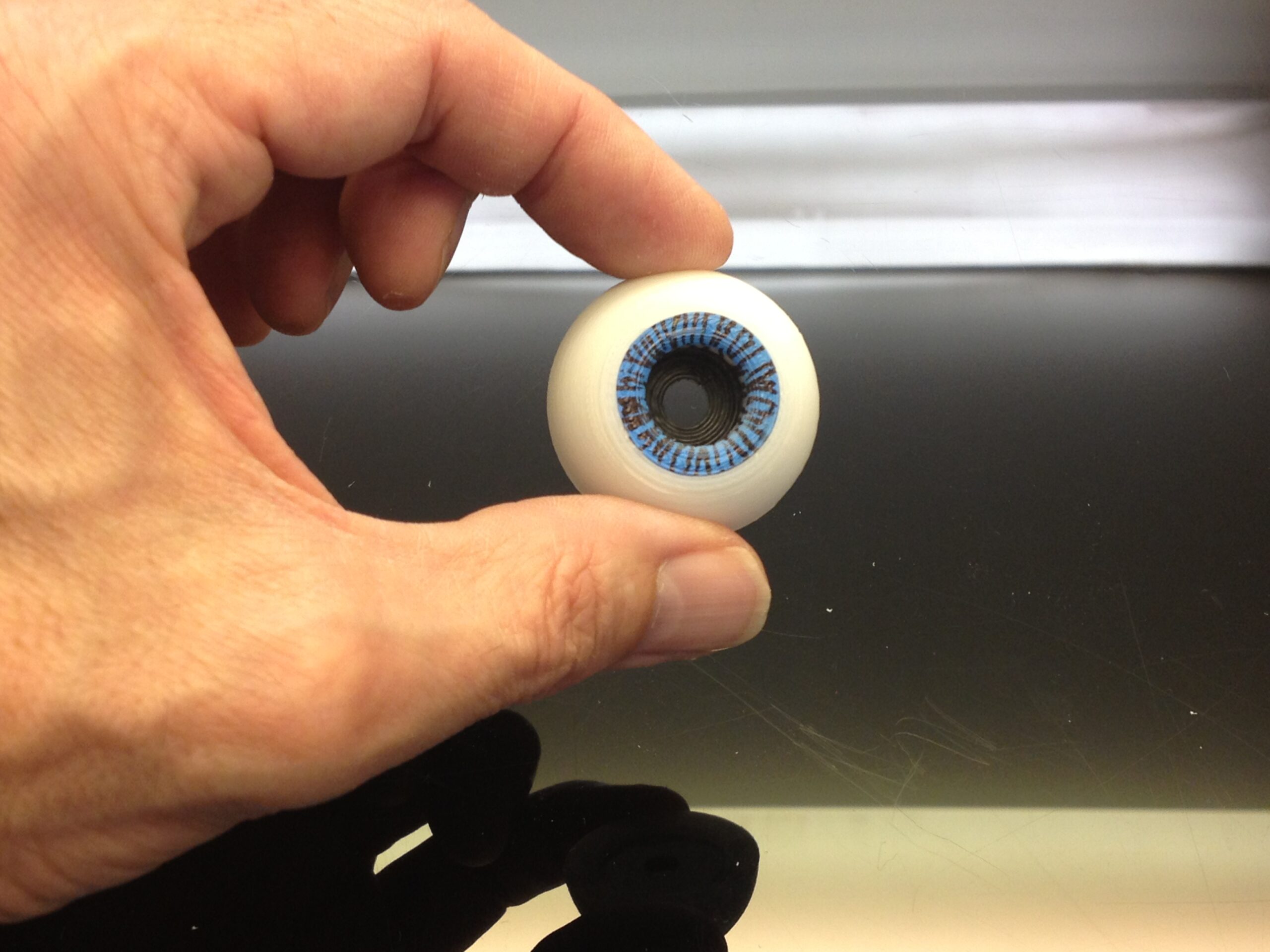 Spray paint or use a colored marker of your choice to create a base on the pupile ring. In my case I used mat blue spray. You can also print the IrisEye file and cut it out.