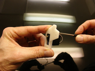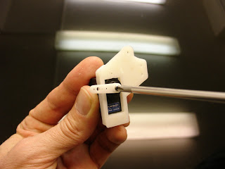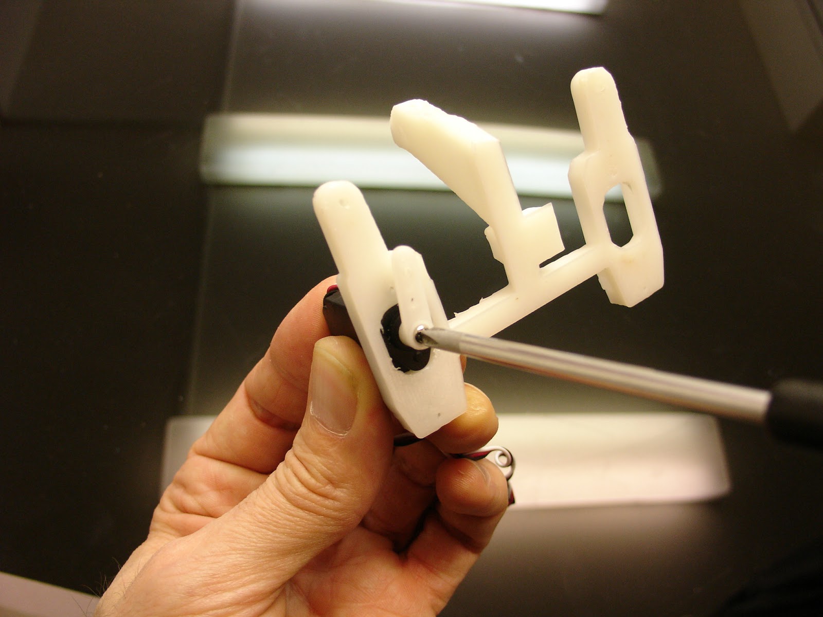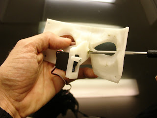 Redrill with a 3mm drill the two holes of EyeHolder.