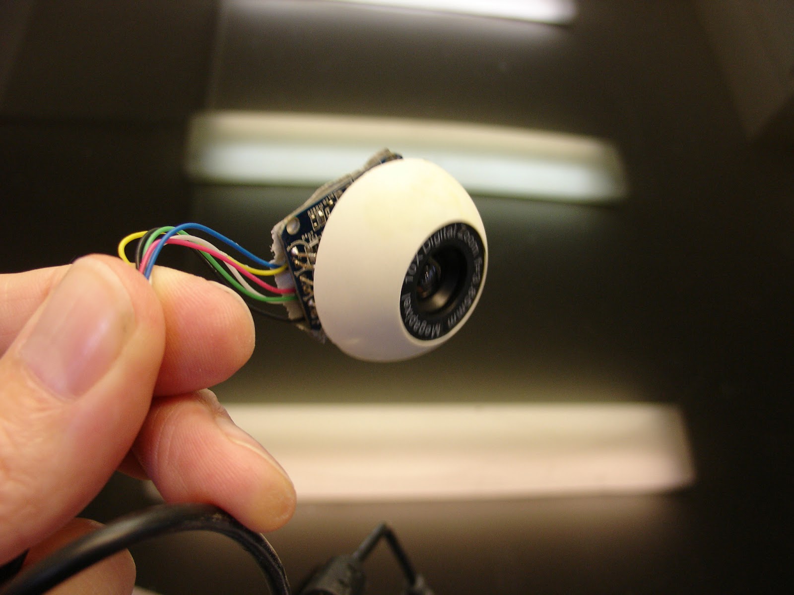 Here, I am using a LifeCamHD 3000 from Microsoft. The image quality seems less good than the Hercules Twist HD. Notice that the EyeBallSupport is different because the PCB of the camera is set horizontably.