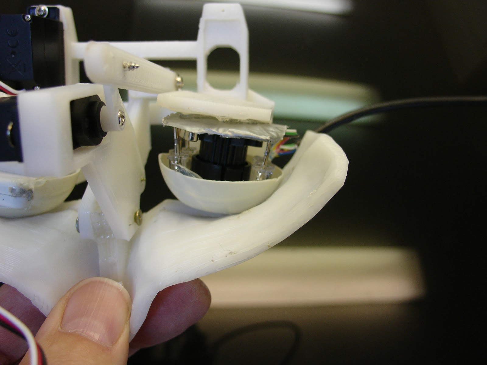 Now fix EyeMoverSide through EyeCamera to the actuator of the servo. You can also mount a second servo instead of using EyeMoverSide.