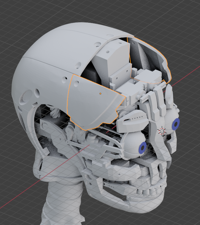 Using some small amounts of silicone or SilPoxy, we are going to fix the skin to the moving parts. We are going to start with the eyelids which require a special method using double side tape and stretchy vinyl. The nose, cheek bones and upperLip can be attached with some Velcro strips glued to the skin and to the printed parts. The rest of the moving parts are somehow anchored with silicone filled in the small cavities and glued to the skin. These method will allows us to remove the skin if necessary and to re-attach it again without having to glue again.