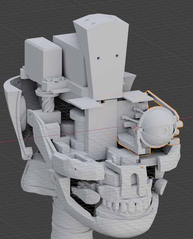 Add the left eye assembly. And fix it with 4 screws (small wood screws).