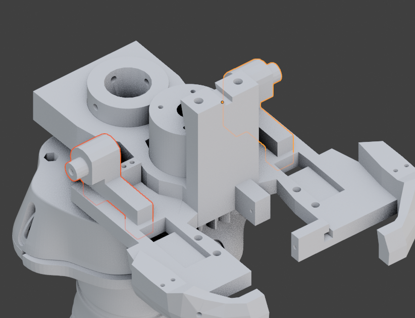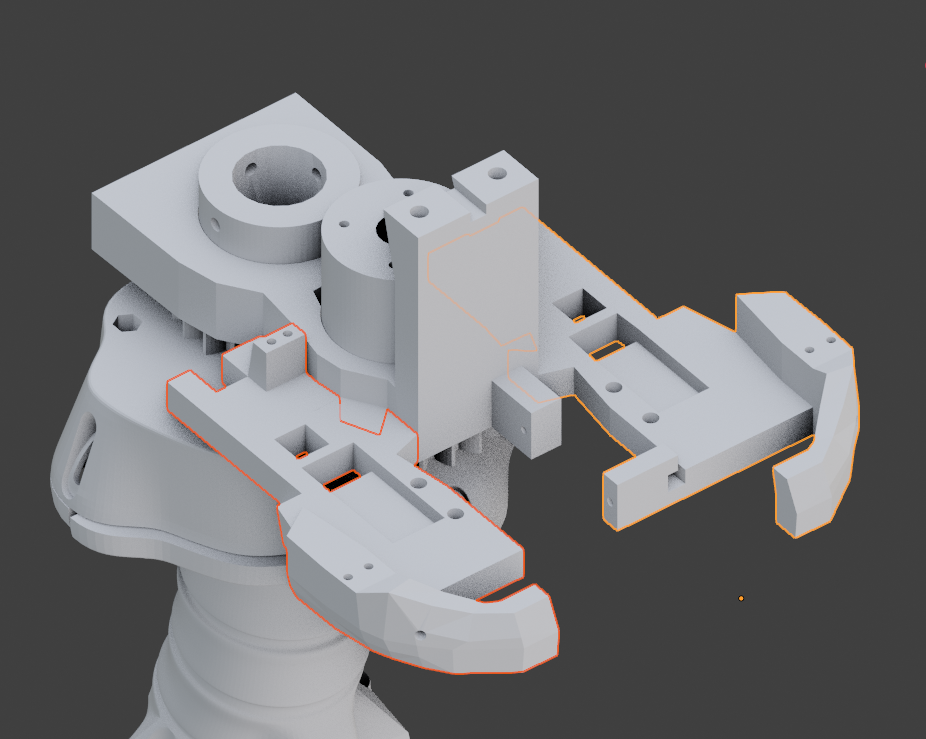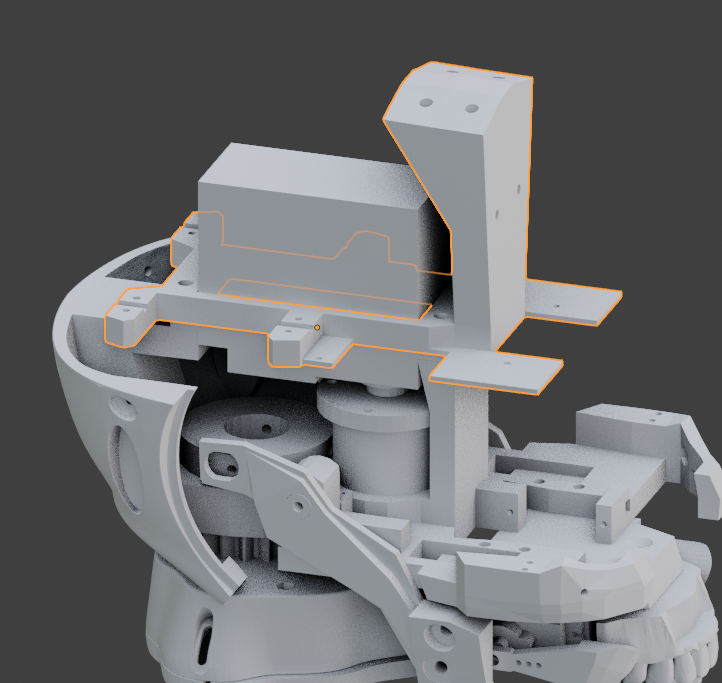 Add servos with screws to ForHeadSupport. Make sure to preset the servos at 90° in your software and mount the horns.