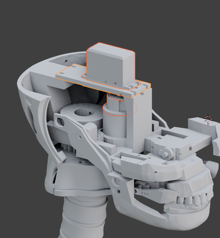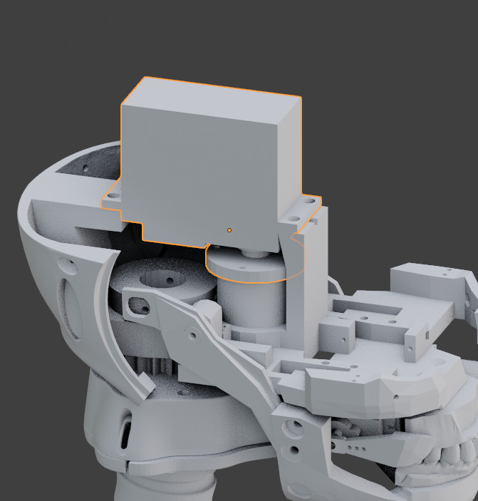 Press over the SkullServoFix. Use 4 screws (wood screws) and fix together the SkullServoFix, the servo and GearHolder.