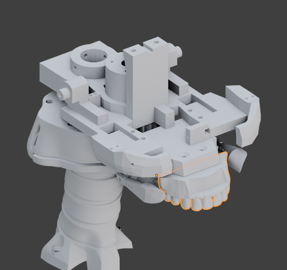 Clips the assembly on the JawHinge. It should move freely. The teeth should close nicely.