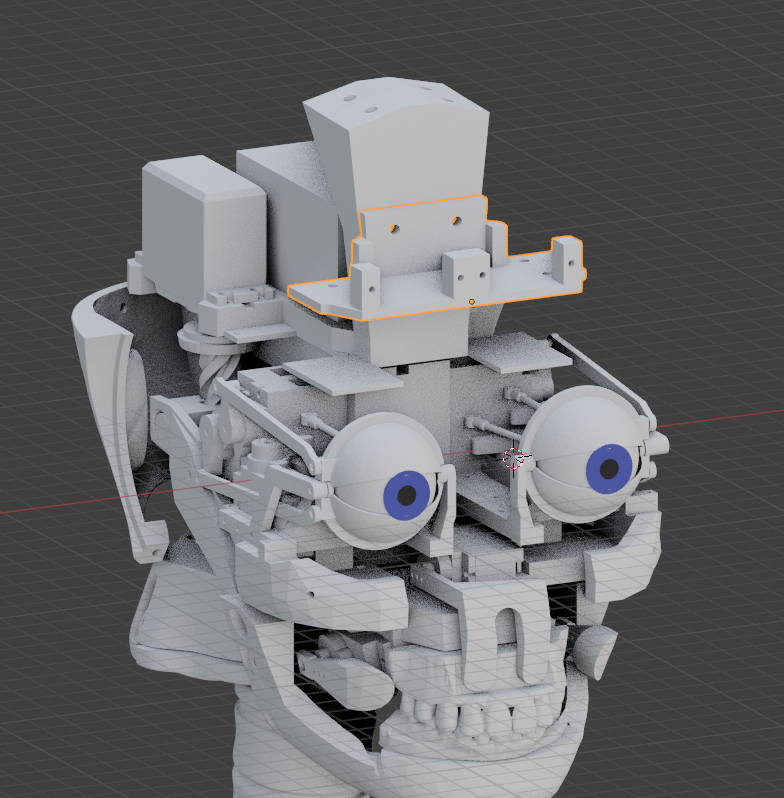 Add the right eye assembly. And fix it with 4 screws (small wood screws). You have a space above the eye assemblies to set the camera driver board with 2 small screws. Make sure to pass the camera ribbon (cable) between the eye and driver board and allows the eye to move freely.