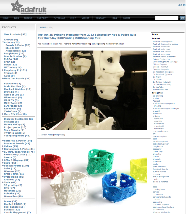 Adafruit has granted InMoov being the top ten coolest stuff to print of 2013 !!