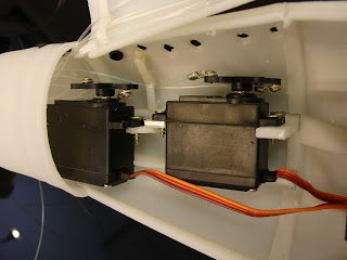 Use the side holes for to tight fit the servos. Notice the arduino support is set upside down in the left hand, this is for the USB connection and to adapt to the hinge/shaft of the elbow.