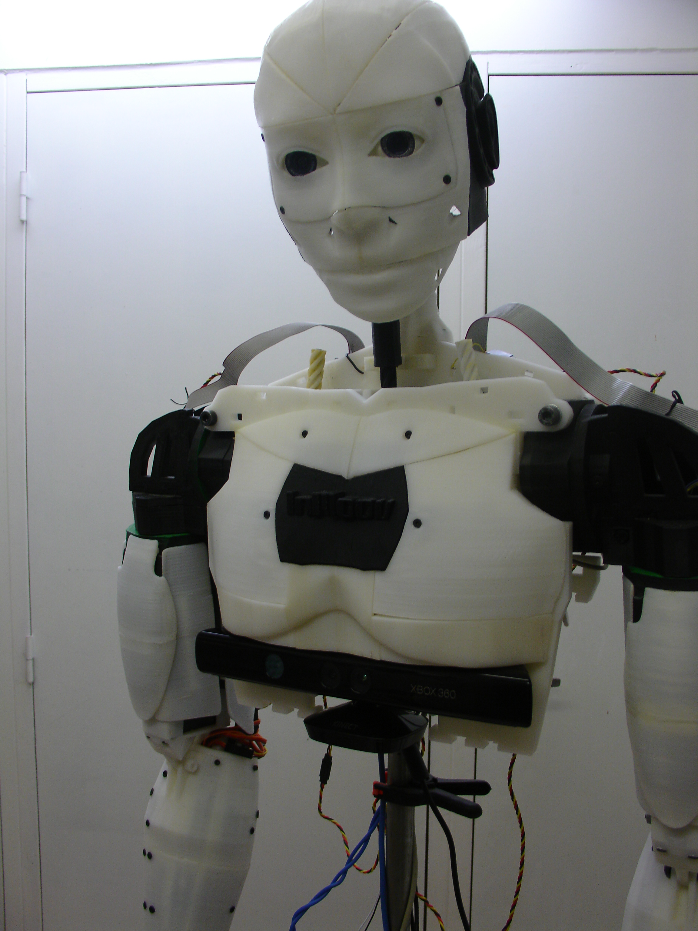 I wanted to work on the legs and keep design it but I had to reason myself and focus on something that could be done within the few days available I have during this month of september. So I worked on the chest parts, and the Kinect final mounting. I really don’t like that Kinect, it’s huge, flat and very difficult to set within a restrained space.