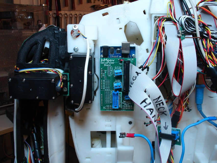 I was glad they could see how the boards and ribbon wires, they had made for me, were finally set up into the robot. By the way these new Nervo boards should be for sale around August for the first batch. We hope so.