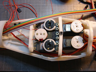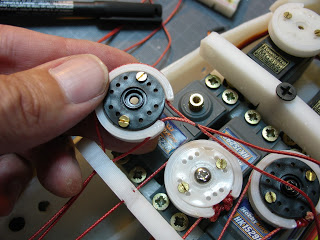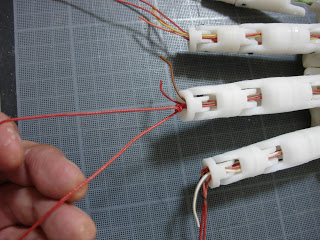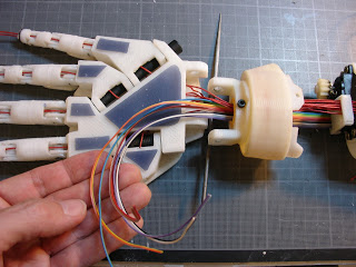 Now that the tendons and wires are lined up correctly from servo to finger tip, make three or four knots by the finger tip. Put a drop cyanocrylate glue on the knots to secure them.