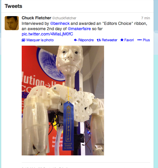 Well I was wondering how things were going on for Chuck Fletcher at the NYC World Makerfaire and apparently things went pretty good.