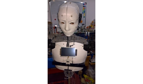I integrated the HDMI-TFT-Display from my desk on InMoov's chest. This makes it more convenient to track debug output from my desk directly when I'm writing the software