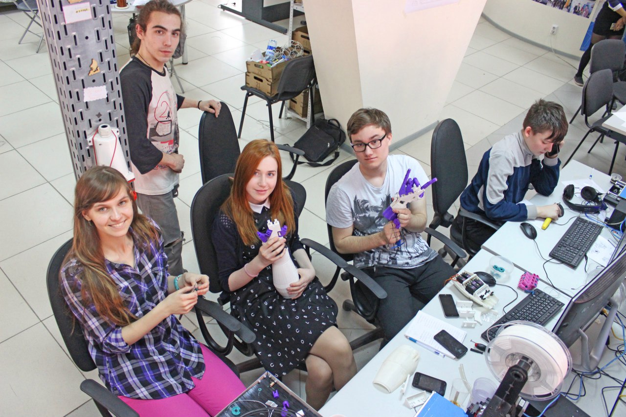 We are the group of students and professionals of the FabLab of Tyumen State University. We’ve come together on the 1st FabLab School for students. Then we’ve been working on this project started in FabLab by Kot Begemot The Great. We’ve already printed hand, forarm and parts of bicep, head and torso. Now we work on analogs of fishing line used to make fingers move.