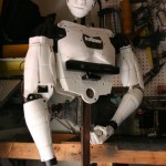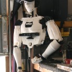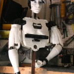 He now is completely autonomous, has a built in Zotac computer, pico projector , speech module, accelerometers in all limbs torso and head, 2 x 1000cca deep cycle battery’s, built in 100A charger, 6 sonic range finders in base, Bose stereo and loud haler, swivel base at the hips, linear actuator in base so he can touch the floor or reach up,…[Read more]