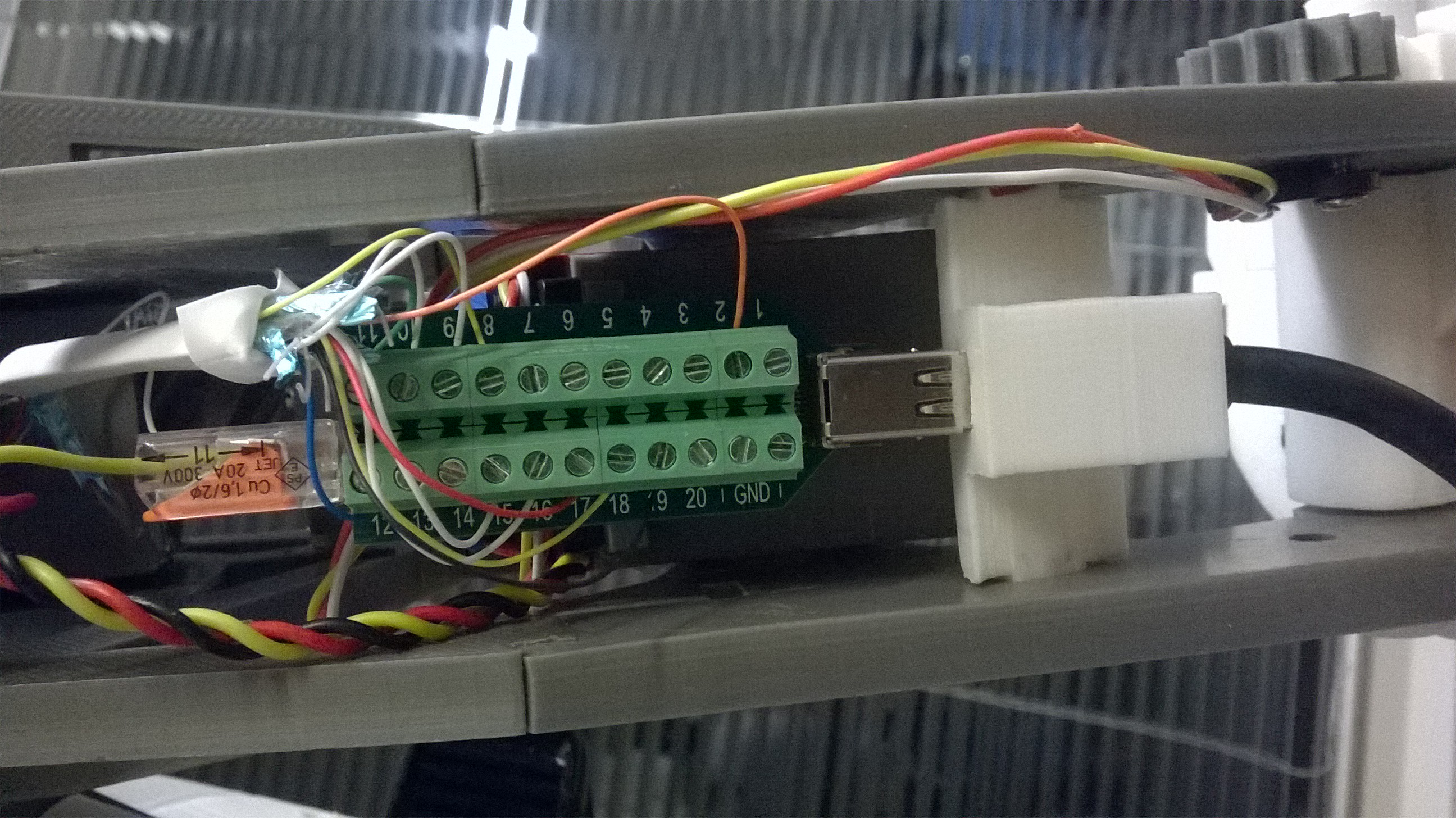 When I started to wire my InMoov there heavent’t been Nervo Bords available so I did set up cabling with the method Mats showed on one of his posts – using Mini-Display cables and terminater boards. I first had my cables go right down into the forearm but this practically disabled the option of removing the forearm from the upper arm. So I replaced the upper arm spacer with a self created one that allows to fit in the plug of the separate lower arm cable part and then connect the terminator to it. This hands off also all the torque on the cable when moving the bicep to the cable colder and not to the signal carrying wires. The amazing thing is how often I now find myself unplugging the forearm to work on it on the table and not in an uncomfortable position beside or below my InMoov. Power is routed separately with clippable contacts (Wago 221).