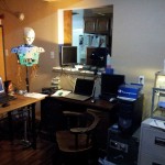 This is my temporary workshop (my frontroom) until the outside temp gets below 100'F (~2 more months). Two laptops, each with MyRobotLab install, linked for sharing modules/devices. My printer & lots of space.