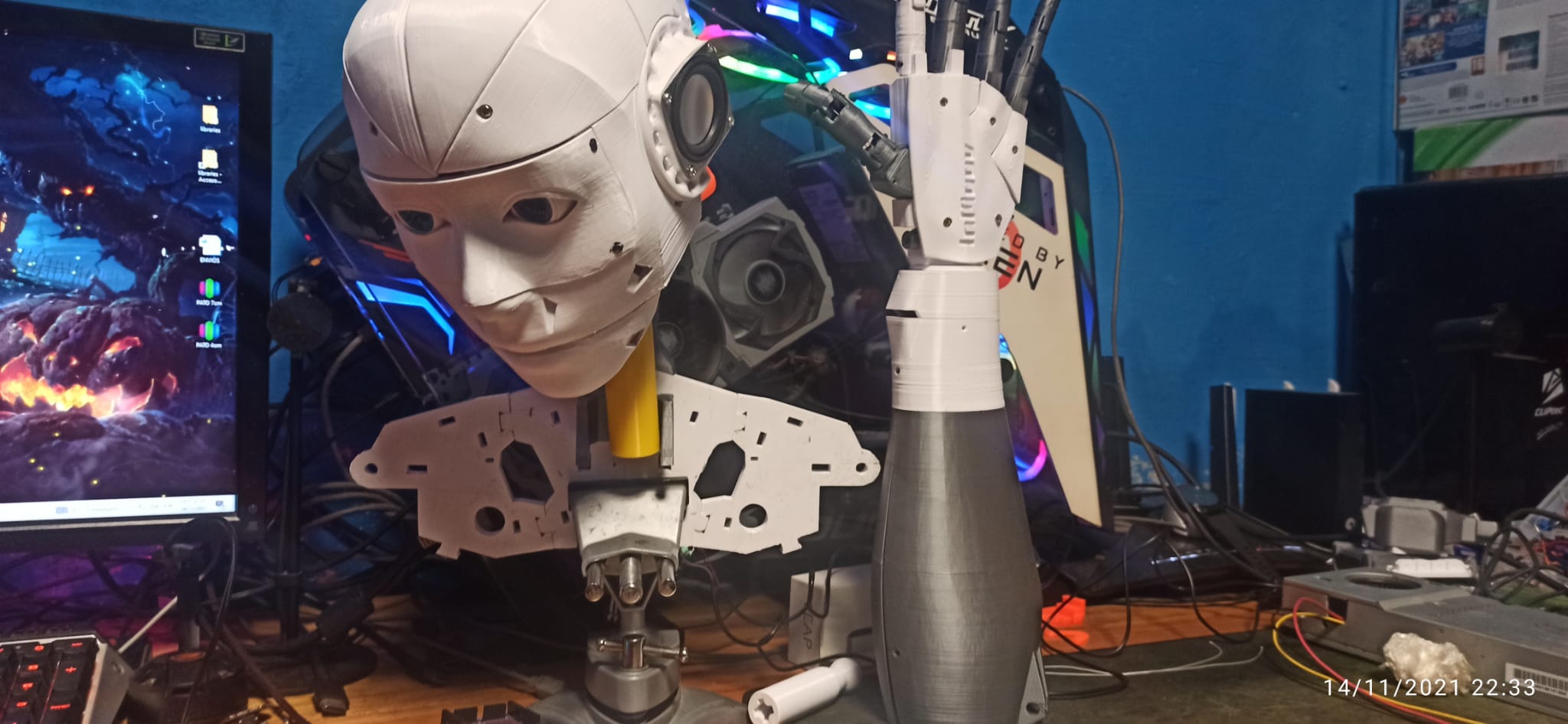 im with the head, and one arm.. next month i think the torso is at least for stand un the head. Very difficult to me in Uruguay, to buy some big servos. Today i spend at least 12 hours to make the face tracking, but no luck. Always have an error in all the MRL i have test.