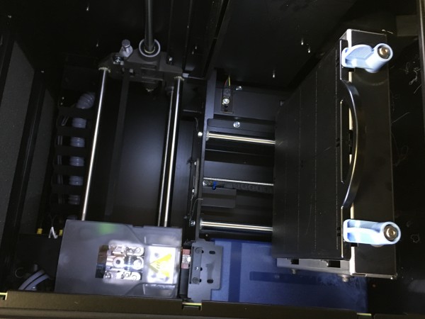 The printing plate is a black platform that will hold the plastic parts as the machine prints layer by layer.
