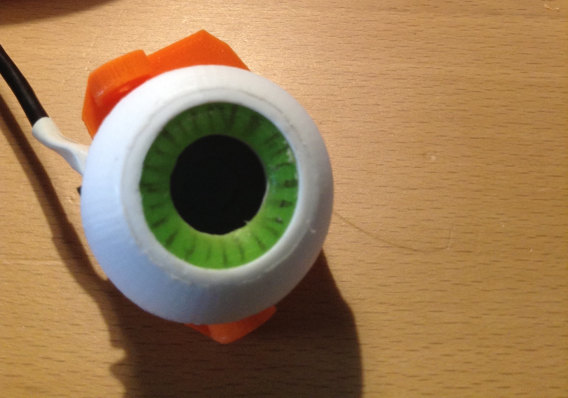 Also I glued the camera to the eye but not really necessary and if you have trouble locating the eyeball then insert pins in the screw holes