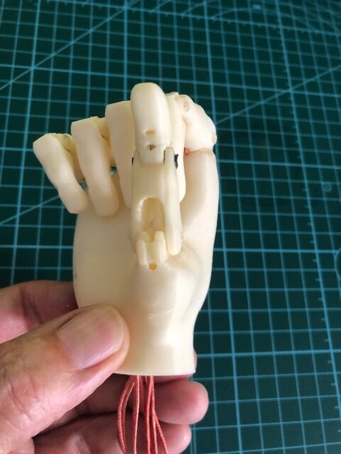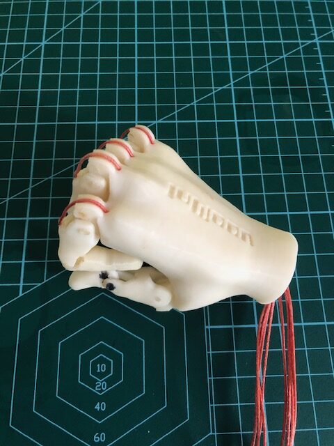 The MinMoovHand is designed by Gael Langevin, it is meant to use only two HK15298B servos set in the forarm, but you can set small servos for each finger if needed.