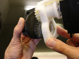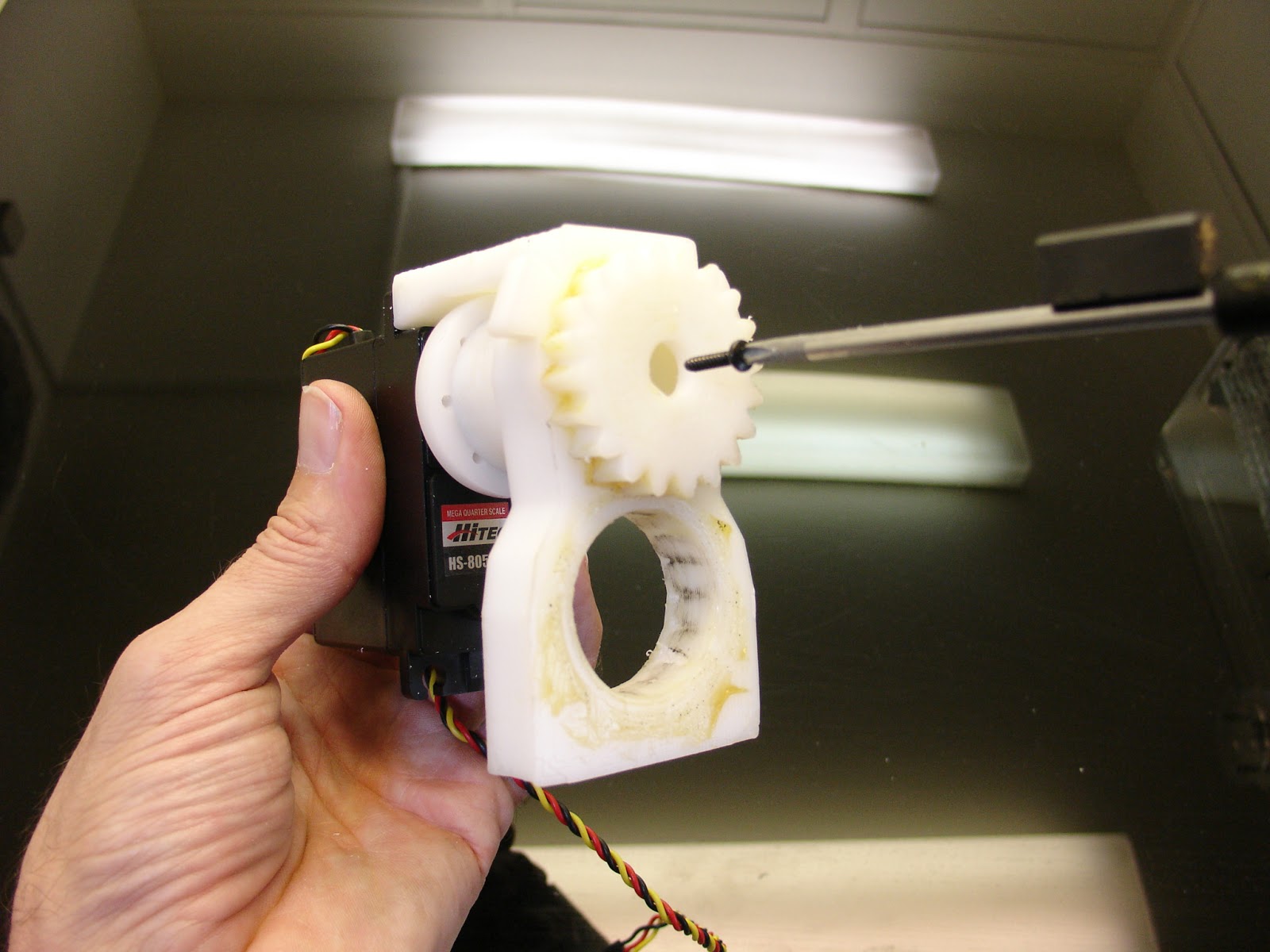 Now the whole head should be able to go up and down if the servo turns from 0 to 180. Make a test with the arduino. Run this test carefully.
