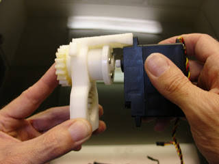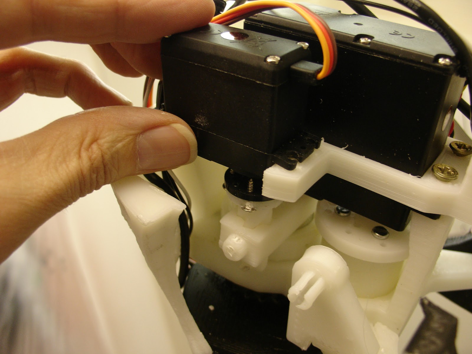 Mount this assembly to the assembly “MainGear” and “NeckHinge”using some grease to ease the rotation. “GearHolder” should be aligned with “NeckHinge” and your servo should be still at 90°.
