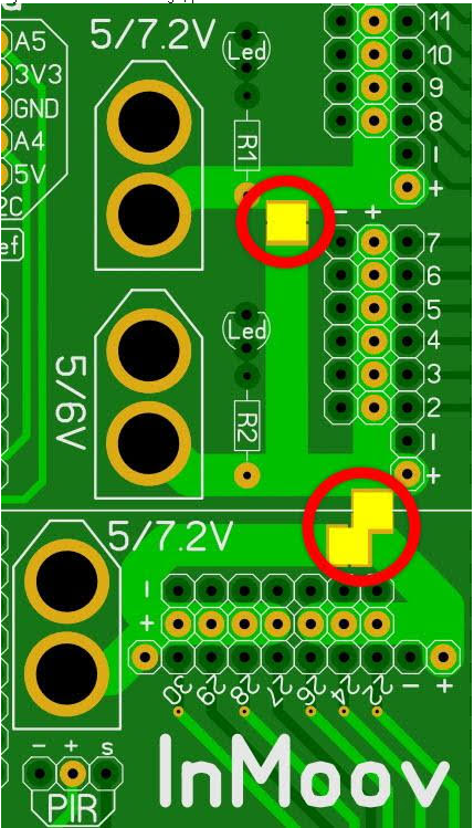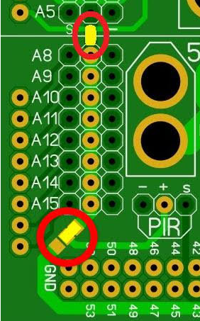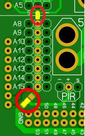 (please notice, on the new version, that the Solder-Jumper between A5 row and A8 row is at the bottom side, close to the PIR connection!)