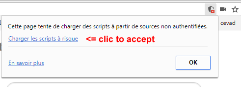 You will have to accept this clicking on the top bar on chrome (see pictures below).